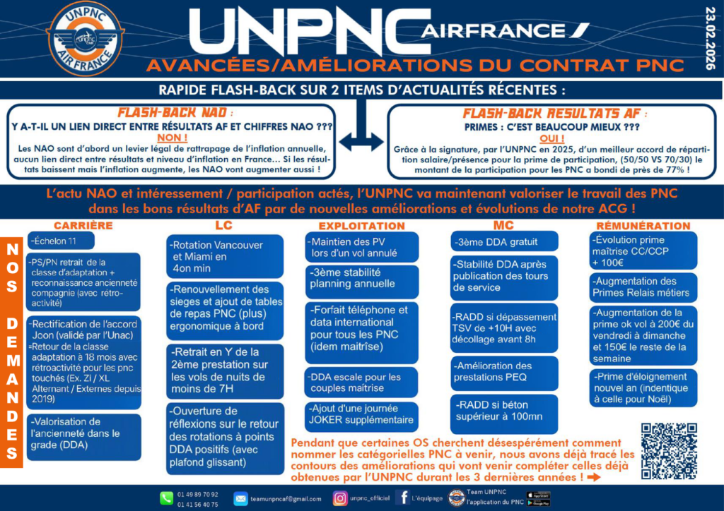 Avancées / Améliorations du contrat de travail PNC